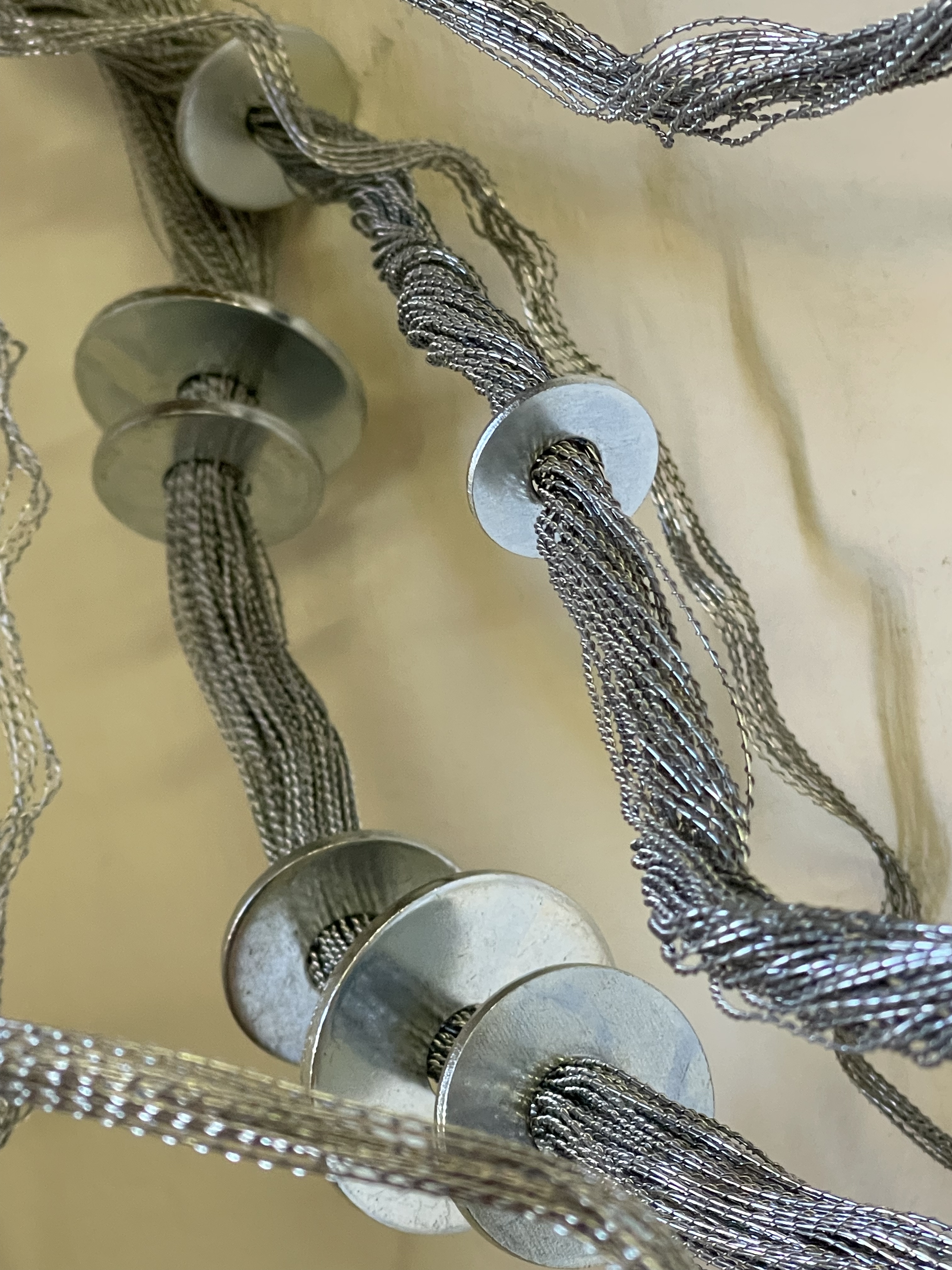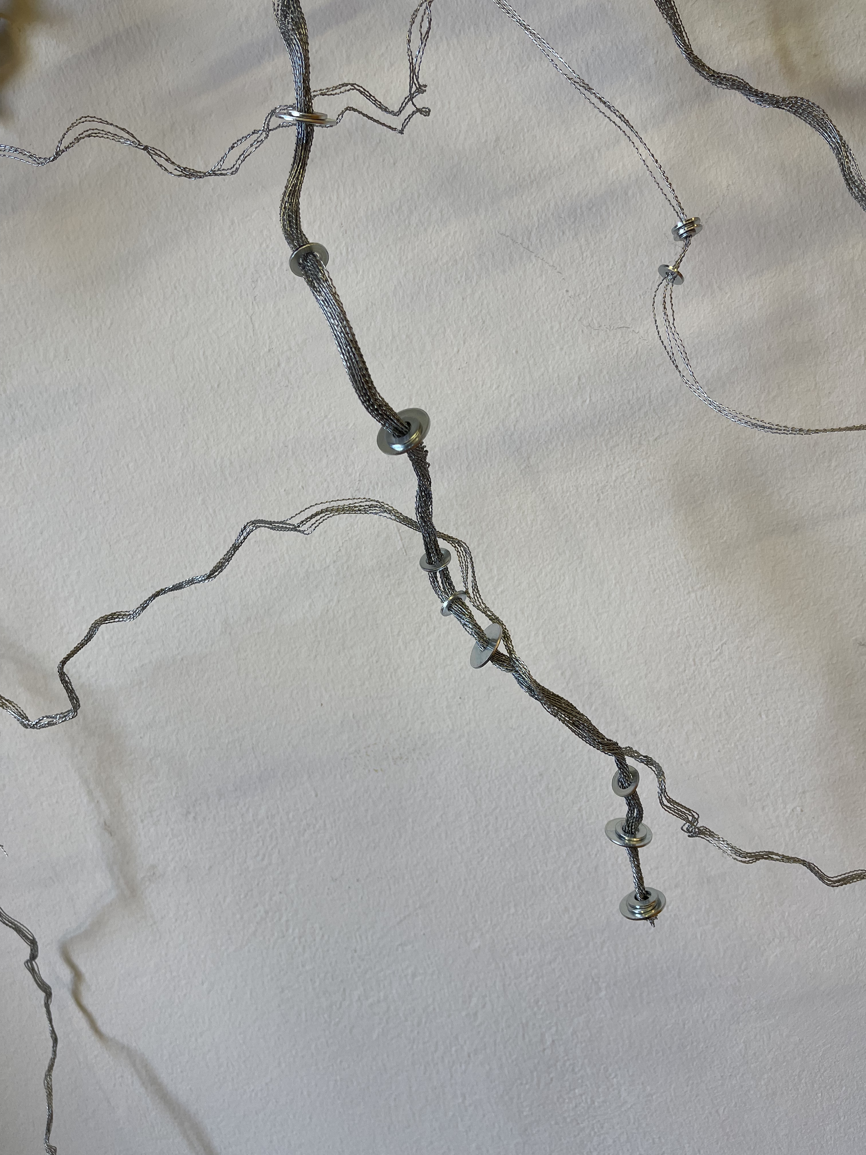 Collage: frammenti di rete – carboncino – sanguigna su tela